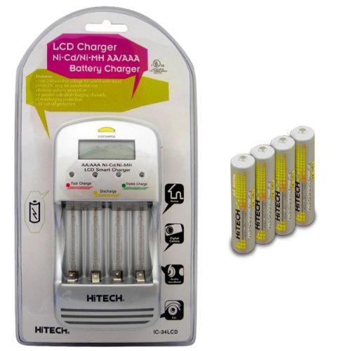 Hitech - Fast Charger with LCD Indicator and 4 Ni-MH AAA 750mAh Rechargeable Batteries